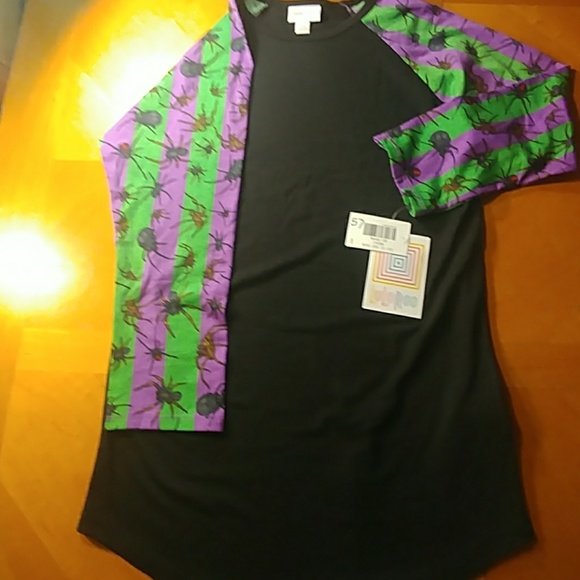 XSmall randy baseball tee 3/4 sleeves New with tags Black with green and purple striped sleeves Halloween- spiders