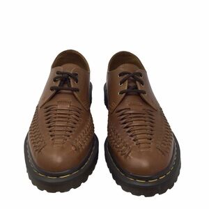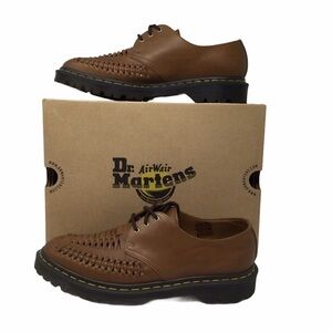 Dr Martens men Ezra Three Eyed Brown Shoes The Ezra 3 Eye shoe has a soft, refined rugged servo lux upper full grain leather with a polish wax finish the interwoven toe box provides a light Summer feel, classic simple styling Goodyear welt construction oil and fat resistant outsole is also slip resistant