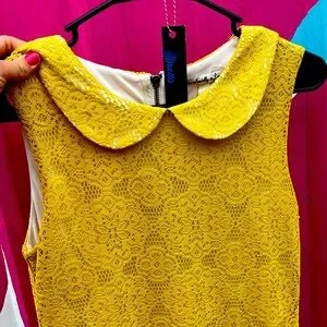 Accidentally in Love Yellow sleeveless Dress, zip-up back short. Size M gently used