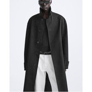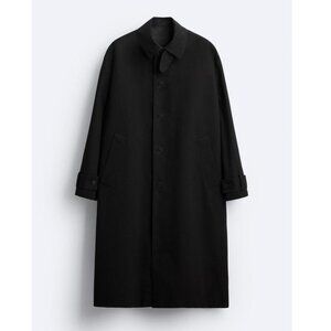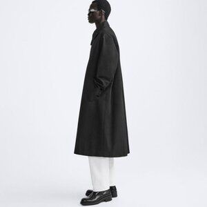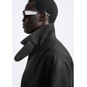 *SOLD* ZARA Men's 100% Cotton Black Trench Coat Size S Oversized Fit NEW!