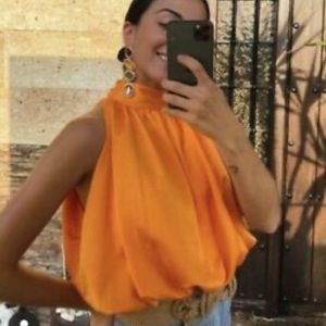 ❌SOLD❌ Zara Satin Neck Bow Tie Blouse