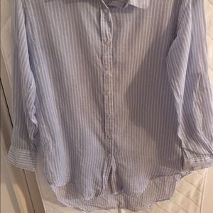 Zara High Low Striped Button Down Shirt XS. Light blue and white stripes . Button details on sleeves with option to make 3/4 . Very long - falls around knees ( my height is 5'4) light weight top. Semi sheer.