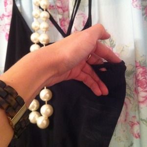 Size S from Victoria's secret. Pairs great with a blazer. There is a hole under the left arm but not noticeable on. Racer back adjustable spaghetti straps. Adorable for the holidays! Black Steve Madden shoes for sale too.