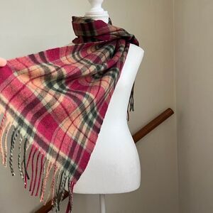 SOLD lambswool soft plaid winter next scarf Shepherds Land Pink Red Fringe