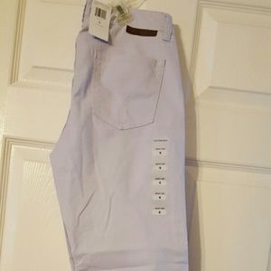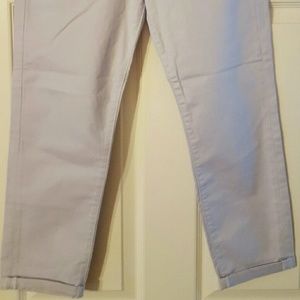 Power Stretch. Sits at waist. Slim fit with crop leg. Color is pastel lavender.