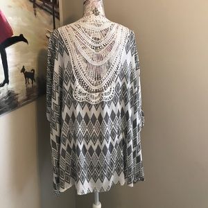 NWT! Black and white geometric print kimono from PinkBlush. Beautiful design on the back. Can be worn as maternity and non maternity.