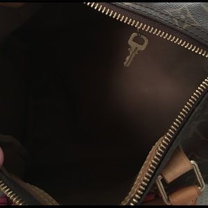 Free twilly to protect handle😻Brown and tan monogram coated canvas Louis Vuitton Speedy 25, tan vachetta leather trim, dual rolled top handles, brown canvas lining, single open pocket at interior wall and zip closure at top. Date code reads SD0056. Good Condition Moderate discoloration, moderate tarnish on hardware and minor marks. Comes with lock & 2 keys, but No box no dustbag .feel free to ask serious buyers😍. scammers not welcome👹