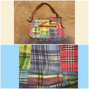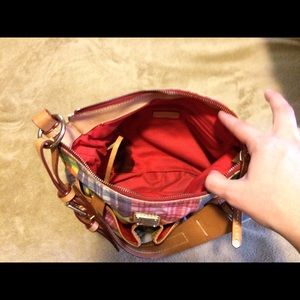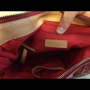 Two pockets on the front, one zippered pocket on the back, one zippered picked inside and a small slip pocket inside. Has a small stain on the back near the bottom, depicted in the 4th picture. Inside has a stain also depicted in the pictures. I did wet the stain with water so it would show up better in the picture, it isn't near that dark when dry. Was used often, could use a good cleaning but is in very good condition. Open to offers ✌️