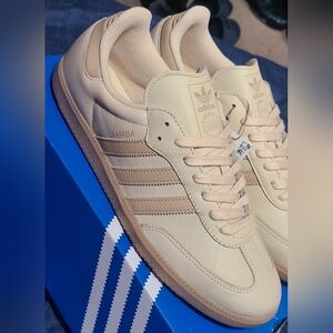 These Adidas Samba OG's are Super Clean and look awesome in this Tan colorway! Super Comfortable, Durable AF & Adidas Quality! A terrific pair of Adidas indoor soccer shoes at an awesome price!