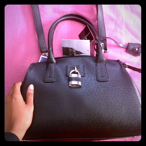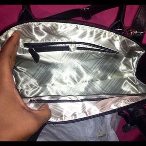 Beautiful black authentic london fog satchel bag ( hard black leather) with London fog lock at center. Great quality and lasting purse Comment for questions :)