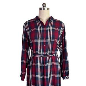 SOLD ruby plaid shirt dress 2X plus size print rayon work casual career EUC