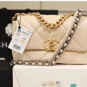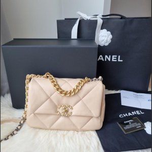 Luxurious 20S light beige lambskin with mixed metal hardware