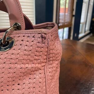 Beautiful and rare, this adorable girl is light pink with silver hardware. Has a small spot on the back (pictured).