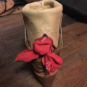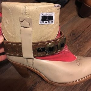 Vintage boot created by Christina Murphy, the founder and creator of "Old Smokeys Boots" These boots are a size 7.5 Frye boot that were reworked by hand in Nashville, Tennessee. One of a kind. Never worn.