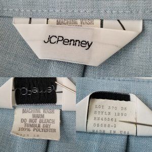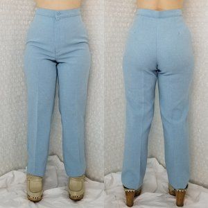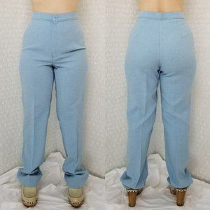 Vintage 1970s JC Penney sky blue straight leg trousers. zipper & button fly. no pockets. Fabric has little stretch. Excellent vintage condition.