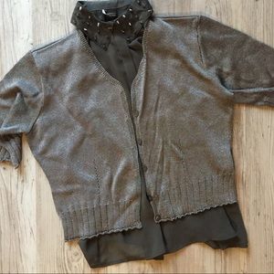 Laundry designer shirt sleeve cardigan with silver knit camisole
