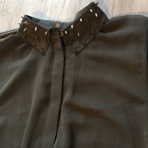 I’ve added a military green sheer sleeveless top with metal collar spikes