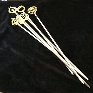 SOLD-6 Vintage 1960's Turkish Stainless Steel & Brass Shish Kebab Skewers,