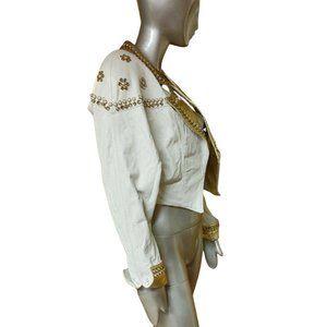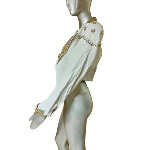 Vtg 80s Beautiful Studded Leather Cropped Jacket by LA ROXX Sz Med White & Gold