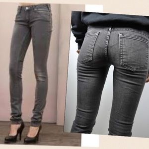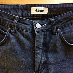 Barely worn Acne Studios skinny jeans ~ mild distressing ~ 2% elastin Hex jeans in Cash (dark gray) ~ no defects / like new ~ waist 15.75" ~ inseam 32.5"