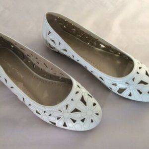 SOLD!Adrienne Vittadini Womens White Leather Floral Slip On Shoes Flats 7.5M