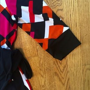 Worn 1x! 95% poly, 5% spandex, approx 35" length. Mod geo print in orange, hot pink, white and black 💕🙌🏻. Non smoking home