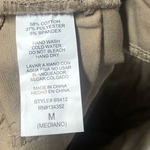 Ambiance Push Up Ponte Knit Comfy Stretchy Womens Khaki Pants Front button closure with zipper fly; belt loops Push-Up; lifted booty Contoured curves size Medium