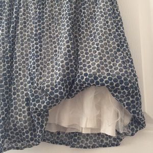 Weston Wear dotted dress from Anthropologie. Has tulle underlay to give it a fun, swing shape but a soft jersey layer so it doesn't scratch.