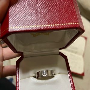 This is white gold, Cartier love ring. Ring size 49. This is the thick width one, not the mini. Minor wear, still in good condition. Comes with box and certificate of authentication.