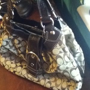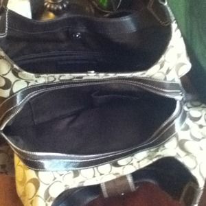 Excellent condition med-large Coach hobo purse with 3 compartments, lots of pockets. Brown and khaki jacquard. Original price $358.