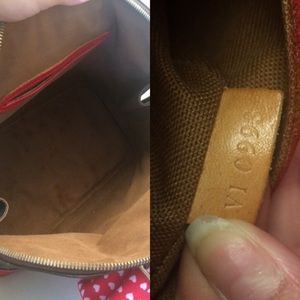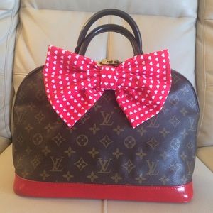 Date Code:VI 0993 Inspired by Minnie Mouse.Hand painted by me,red base and black handles.Inside vachetta red.Everything has been sealed.Red bow heart polka dots handmade by me.Canvas in great condition, has been cleaned.brass has been polished, like new.Inside has small water dots but doesn't defer use of handbag.This bag is preloved but revamped like new.Comes with keychains Authenticity shown in photos.Length: 11.75" Height: 9.5" Depth: 6.25" Drop: 3.75"