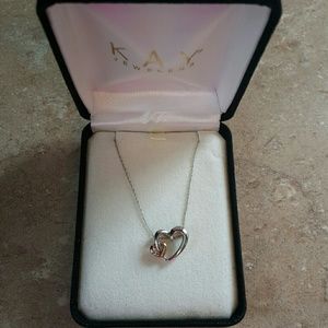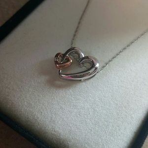 Beautiful Kay Jewelers Double Heart Necklace. Chain link on the necklace is broken but can easily be repaired or replaced. Pendant looks brand new. Sterling silver with bronze little heart.