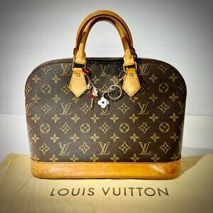 SOLD-Authentic Louis Vuitton Alma Satchel Bag MM Medium Monogram with Dust Bag