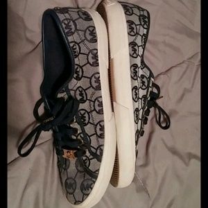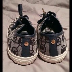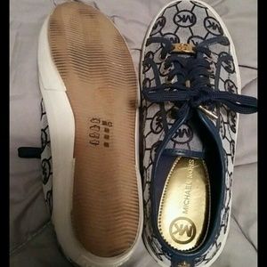 Authentic Navy Blue & White Michael Kors MK Signature Logo Shoes. Size 8.5. In great condition....Only worn a couple times. Gold metal accents. Paypal accepted :)