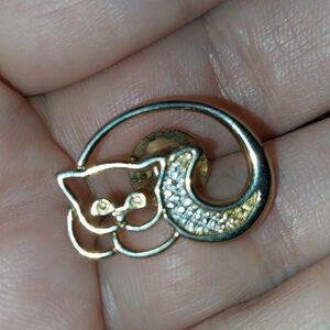 Elegant gold cat brooch with sparkling accents. Perfect for cat lovers.