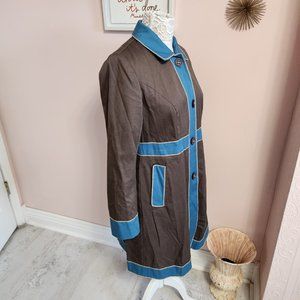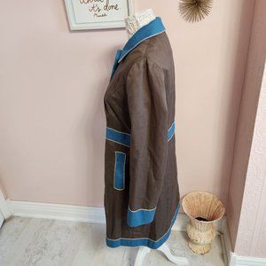SOLDBODEN Colorblock turquoise, brown long jacket NWOT 12 Cotton
