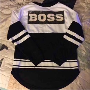 Similar to PINK , except it's from RUE21 .. worn about 3x & is in excellent perfect like new condition .. the color is black & white .. it's a size XS but it's suppose to fit oversized