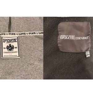 These two Victorias Secret zip ups are in good condition! The grey one has a small crack in the dog on the front and a small one in the heart on the back. The black one is beautiful it just has a few rhinestones missing from Paris! Other than that they are great! The grey is a small and the black is a medium but they both fit really nicely the same!