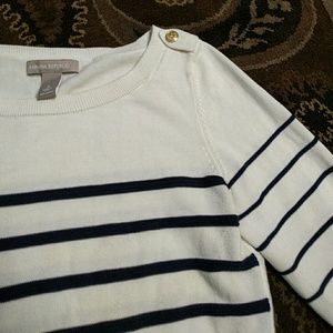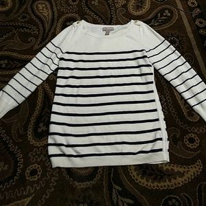 Adorable size S striped sweater from Banana Republic, navy blue stripes and golden buttons on the shoulder, almost sailor style. Comfy and great for layering!