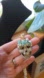 The chunky skull charm measures about 1 1/2" long and is covered in sparkly rhinestones and enameled flowers in blue and white. It is nice and thick and heavy.