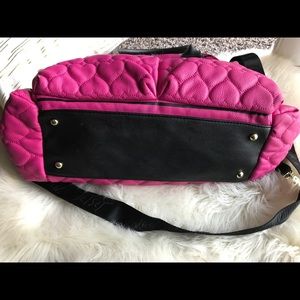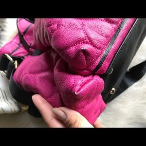 Beautiful betsey Johnson diaper bag(large) in the color hot pink very nice it dose have some small flaws (see last 3 pic) but there not noticeable ❤️