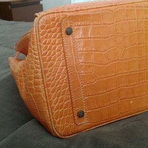 I bought this bag in Ireland Dublin a few years ago...I used it a few times/max 4/ but unfortunately I'm kind of a shy person and I didn't like the attention...every single time someone just asked me if it is a real Hermes ...I purchased it because I love the real one but I don't have 40000$ for it It has no Brand...a Leather Craftsman made it in his little shop... The bottom metal legs oxidised ....and on the back side of the handle there are some scratches,otherwise it is clean and perfect.