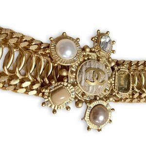 ❤️SOLD❤️CHANEL Flattened Gold-Tone Metal Chain Belt with Stone Set Buckle