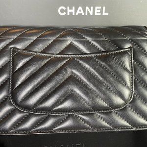 ***SOLD****Chanel Classic Flap Reissue 2.55 So Black Chevron Wallet On Chain WOC
