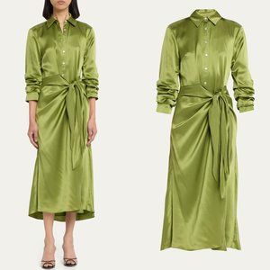 ❌SOLD❌Cinq a sept jacey green silk button down faux wrap dress FINAL PRICE