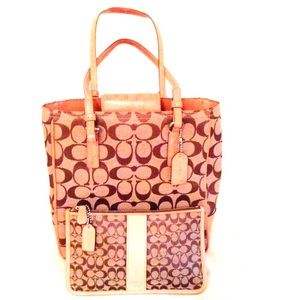 Authentic Coach Clutch Wallet/Pouch with the classic signature pattern. Perfect for carrying makeup, credit cards, money and keys. The picture with the bag gives an idea on the actual size. (Excellent condition carried twice)