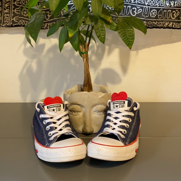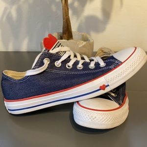 *SOLD*Super cute denim converse with ❤️ details on tongue and side of sole. Brand new worn once