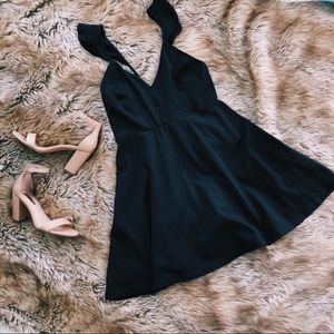 Lulus black mini flutter dress. Pre-loved in good condition. With approximate measurements as shown.