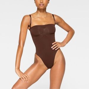 Elegant dark brown bodysuit. Strapless design. Versatile and stylish. Only worn twice!