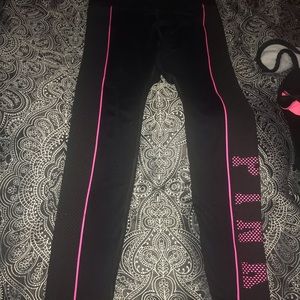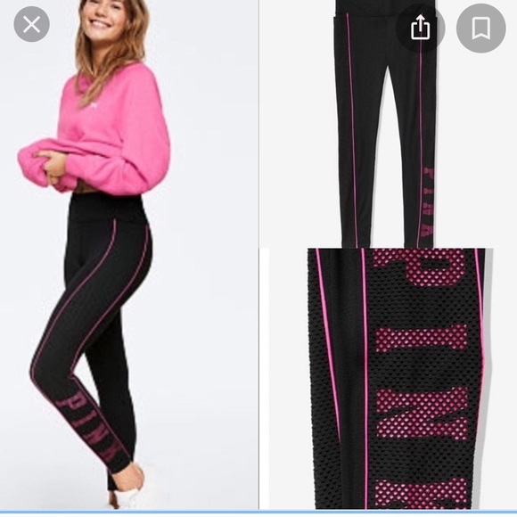 The base color is black, with neon pink fishnet down the side of the leg saying “PINK”
